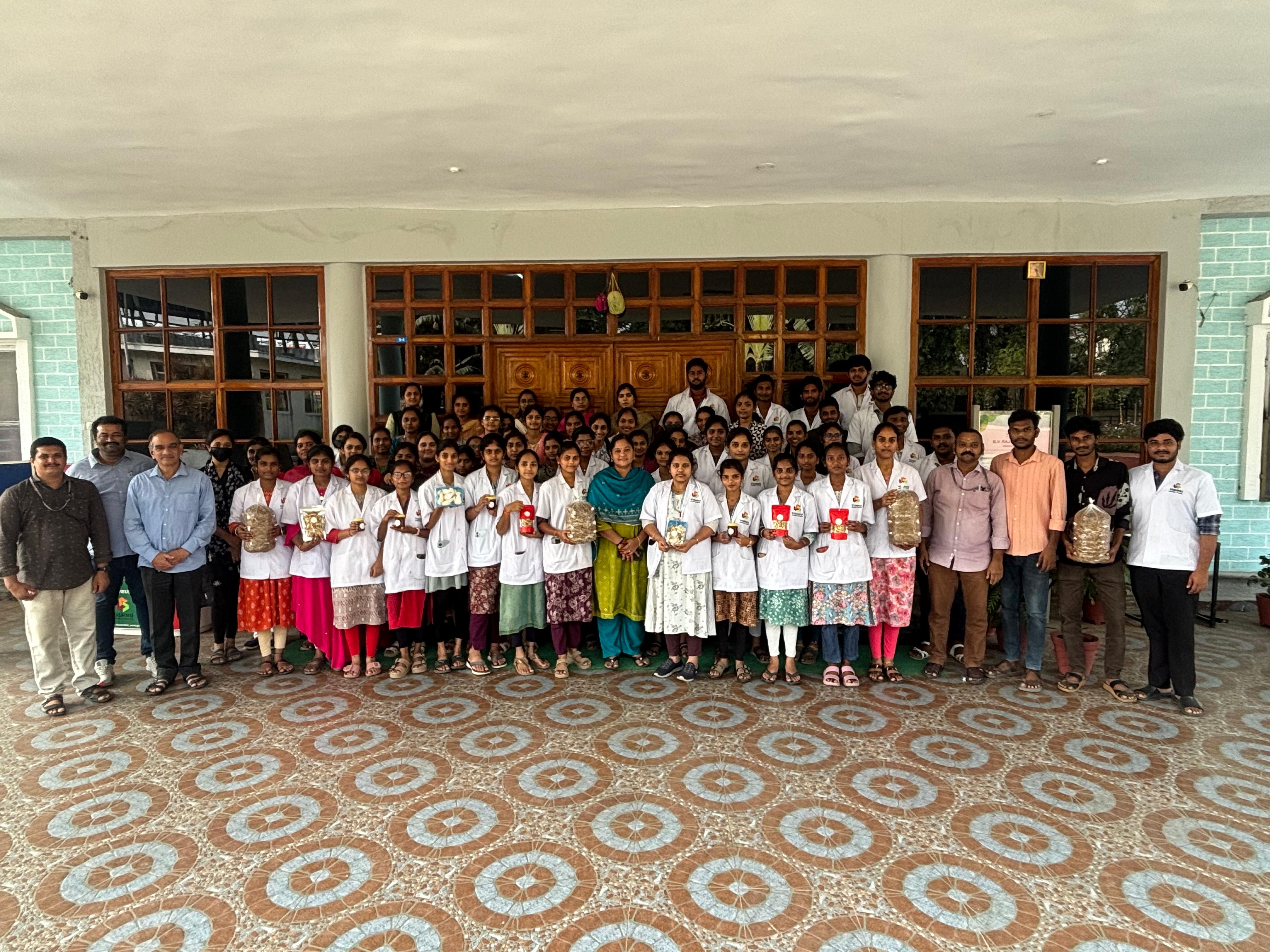 The Department of Life Sciences held a one‑day Mushroom Cultivation workshop for II‑year students with Smt. Sri Lakshmi Garu, Proprietor of Sri Lakshmi Mushrooms, Rajahmundry, as resource person.