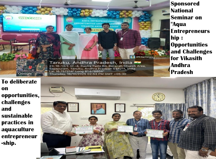 ICSSR-Sponsored National Seminar on "Aqua Entrepreneurship : Opportunities and Challenges for Vikasith Andhra Pradesh.