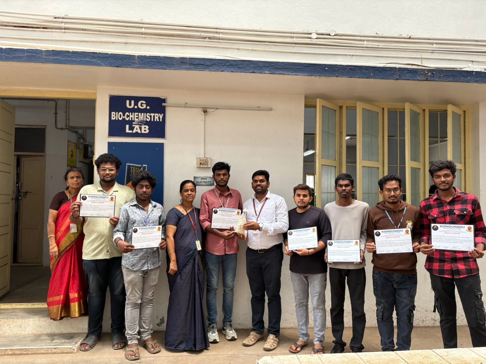 One faculty member and six final‑year Life Sciences students attended a two‑day training programme at Konganadu Arts and Science College, Coimbatore.