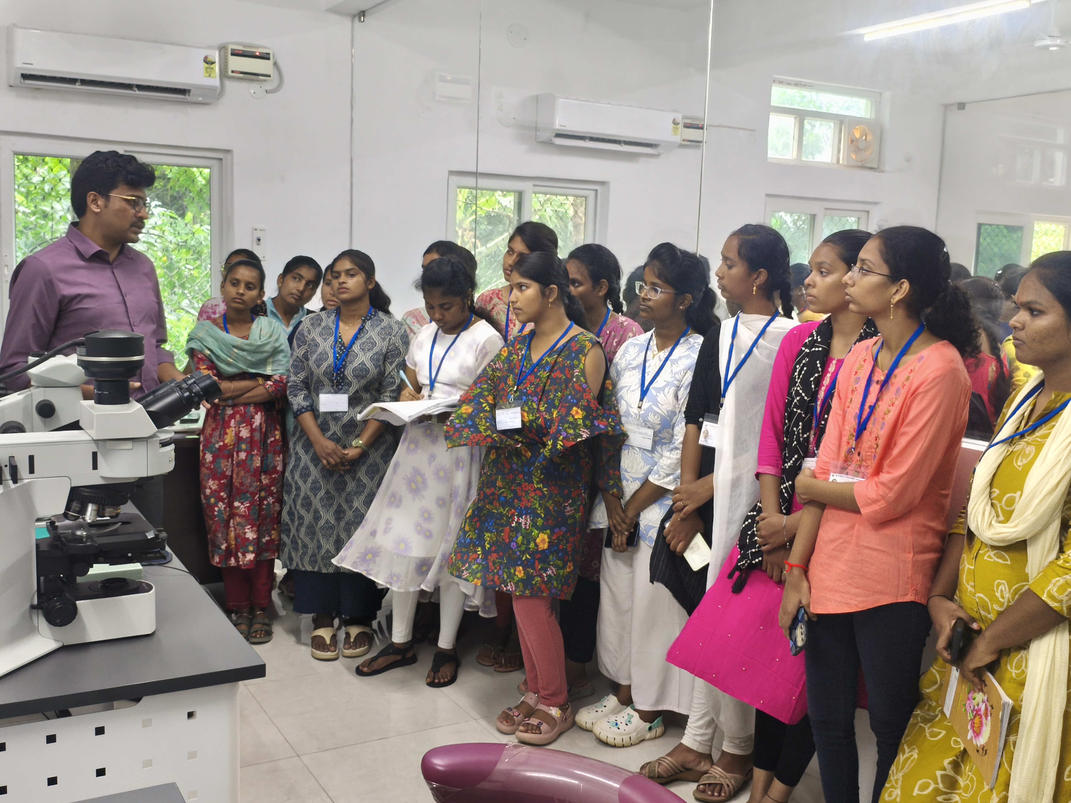 I Year BSc Life Science students (Microbiology, Biochemistry, Biotechnology) visited the histopathology laboratory at Vishnu Dental College.